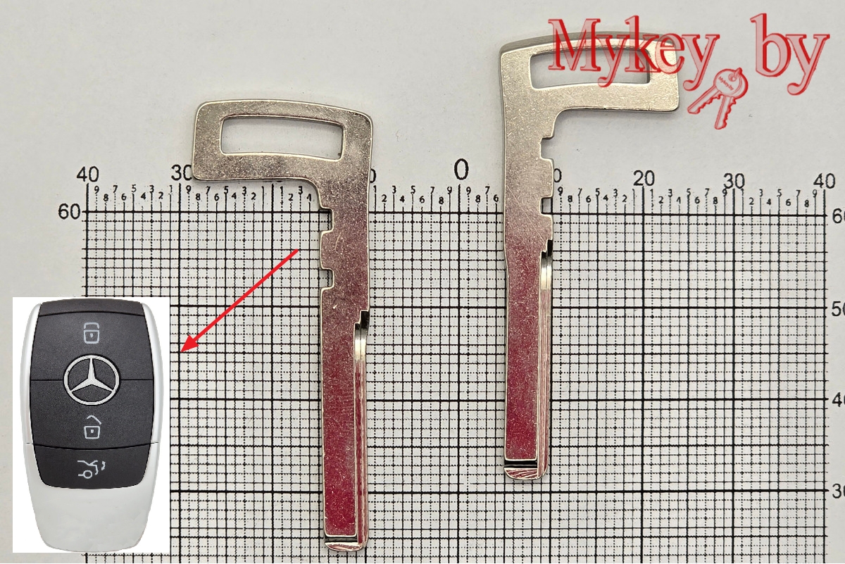 Лезвие-вставка в cмарт ключ - HU64-T Mercedes Sprinter W222/W213 (44х5,5х2,95мм, латунь)