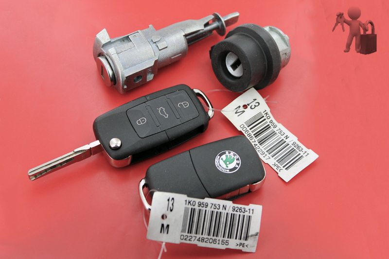 В комплект входит сеhдцевина зажигания, 2 личинки дверных замков, 2 пульта-ремоутконтрол (частота 434MhZ), 2 передних части пульта с чипом 48 и нарезанными лезвиями. Довольно выгодно по комплектации. Используется в VW-SKODA