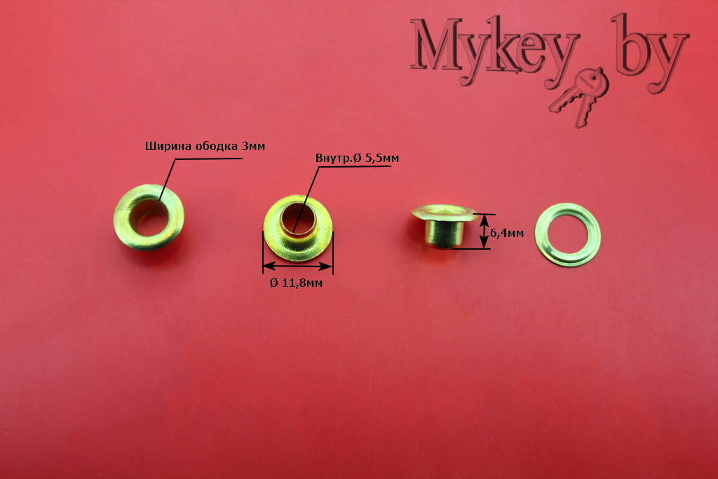 Блочки-люверсы № 4 - Золото (внешн.Ø 11,8мм/внутр.Ø 5,5мм, материал-сталь, 1уп.-50шт.)
