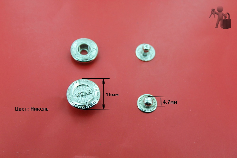 Кнопка Альфа-Китай - Декор Ø16мм - Никель (пупсик-4,7мм), 1уп.-10шт.