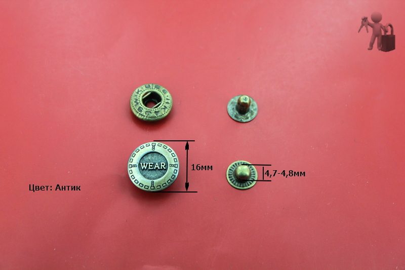 Кнопка Альфа-Китай - Декор Ø16мм - Антик (пупсик-4,8мм+/-), 1уп.-10шт.