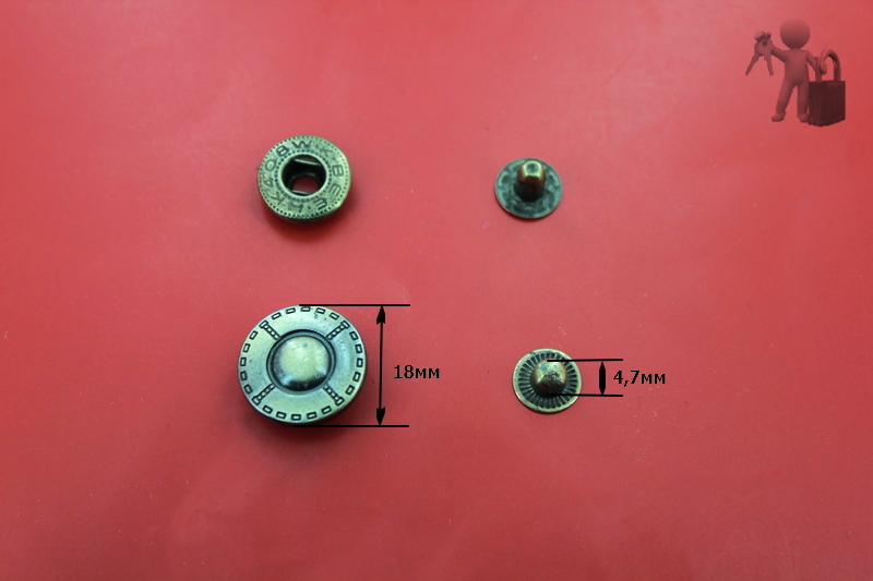 Кнопка Альфа-Китай - Декор Ø18мм - Антик (пупсик-4,7мм), 1уп.-10шт.