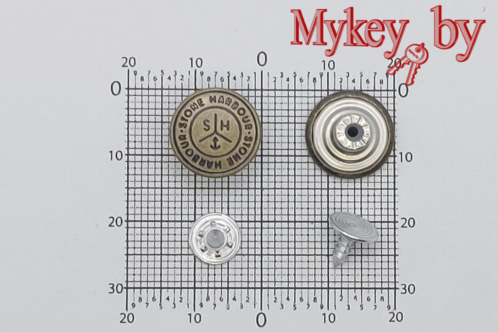 Пуговица ДЖИНС Ø 15 мм - Стабильная - Антик - "SH"