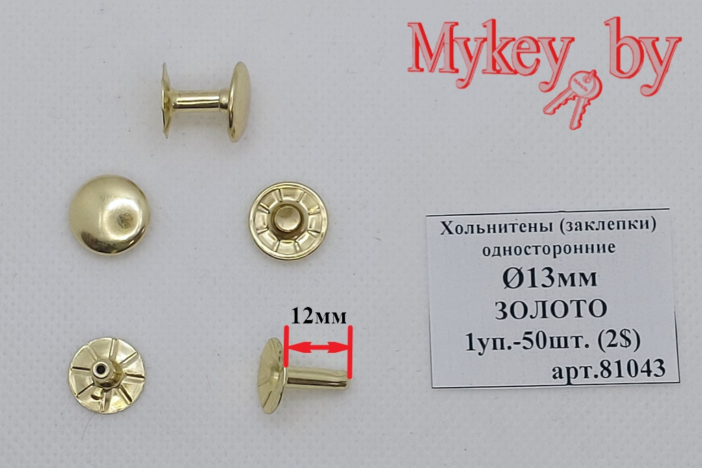 Хольнитены (заклепки) односторонние Ø13мм - Золото (1уп.-50шт.)